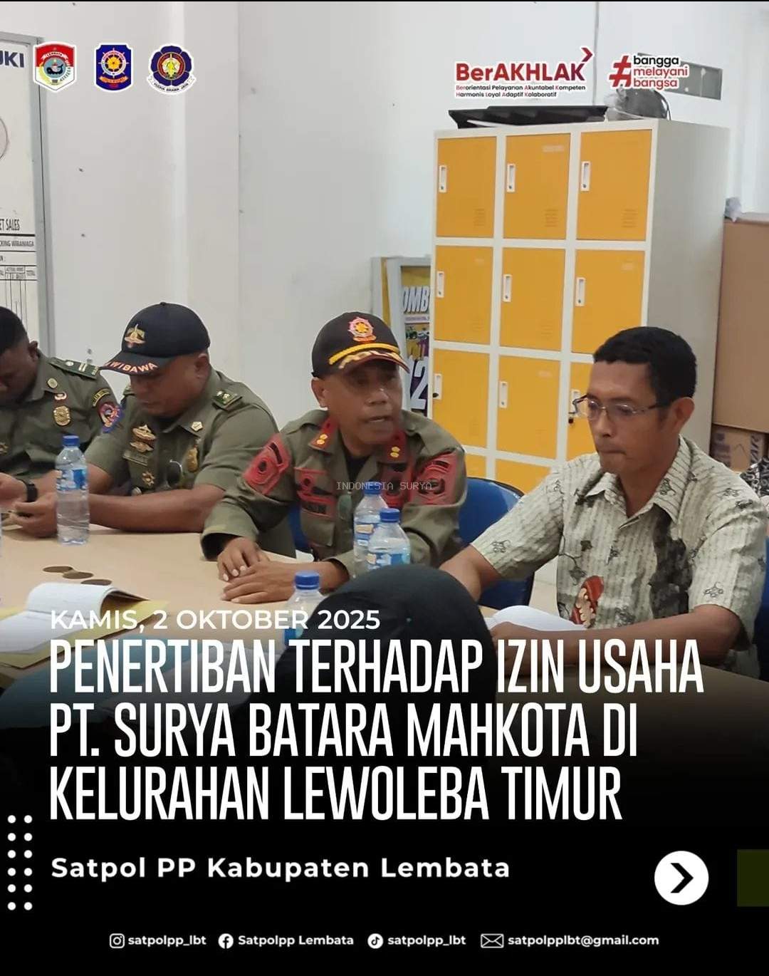 Maka kepada PT. Surya Batara Mahkota yang sekarang membuka Cabang di Lembata namun, belum punya ijin maoa disampaikan agar segera berproses ijinnya kalau ini dibiarkan terus maka Sat.Pol.PP mengambil tindakan sesuai SOP Sat.Pol.PP dan Peraturan perundang-undangan yang berlaku.