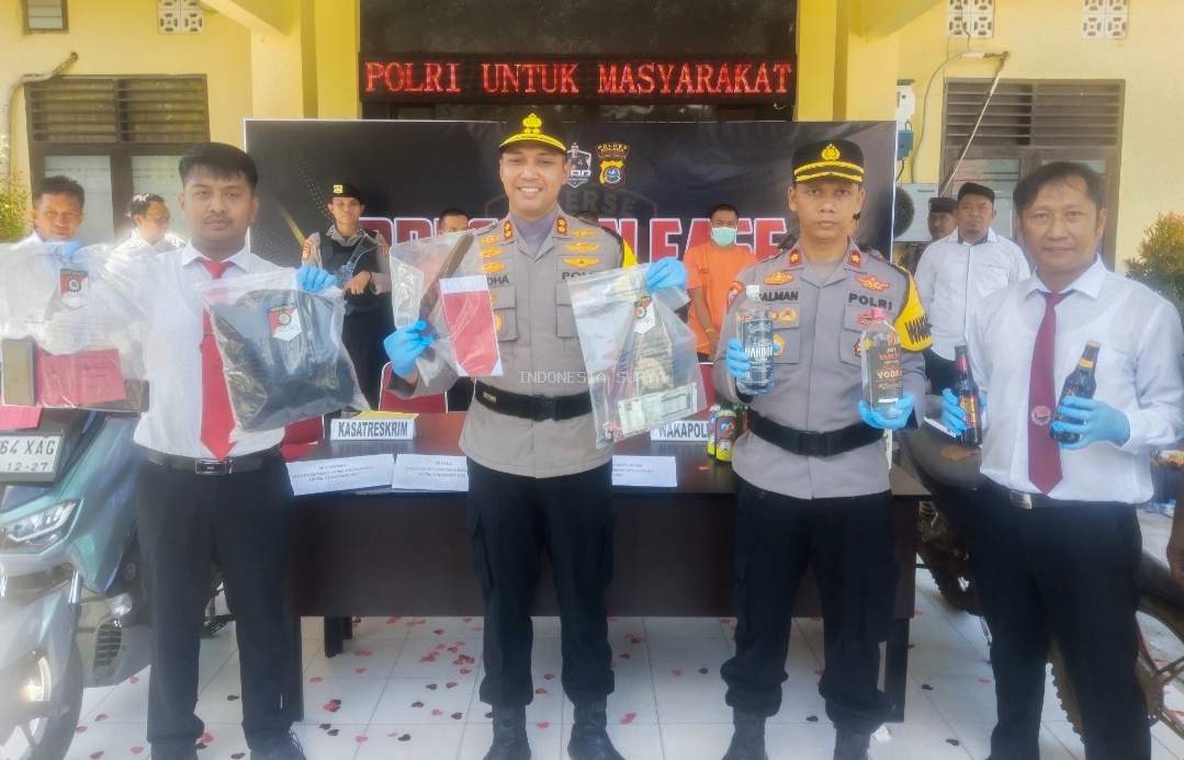 Kapolres Kolaka AKBP Yudha Widyatama Nugraha, S.I.K., M.H., CPM. didampingi Waka Polres Kolaka Kompol Dr.Mochamad Salman, S.H.,S.I.K. M.H., Kasat Reskrim AKP Hastantya Bagas Saputra, S.Tr.K., S.I.K., Kasihumas Iptu Dwi Arif Setiawan, S.H. ,bertempat di Mapolres Kolaka. (17/11/2025) mengelar konferensi pers hasil giat.