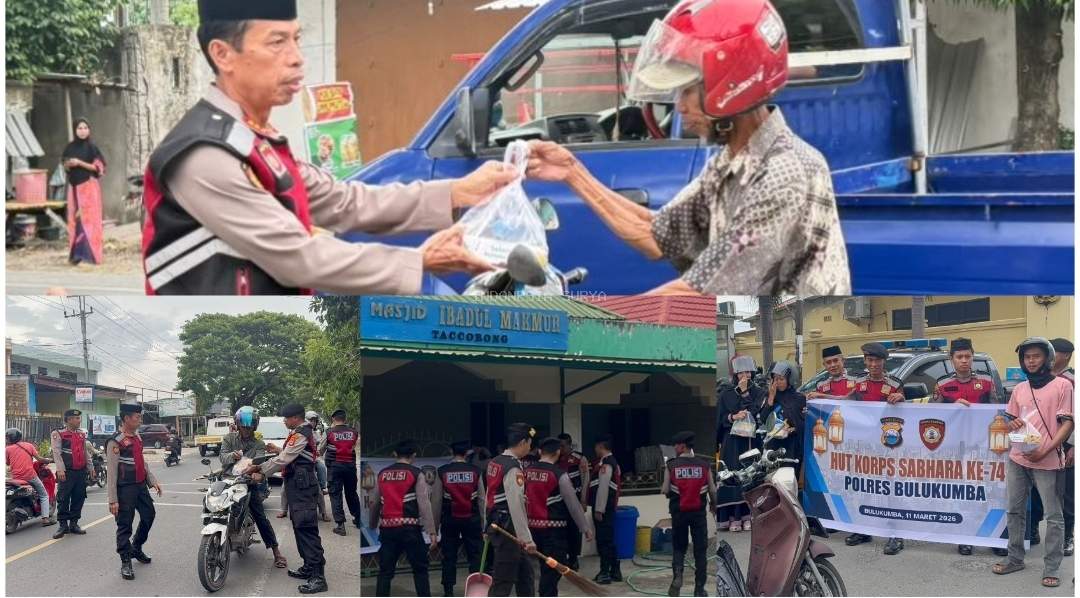 BULUKUMBA — Dalam rangka memperingati Hari Jadi Korps Sabhara ke - 74 yang diperingati setiap tanggal 11 Maret, Satuan Samapta Polres Bulukumba menggelar kegiatan bakti religi dan berbagi takjil kepada masyarakat, Rabu (11/3/2026).